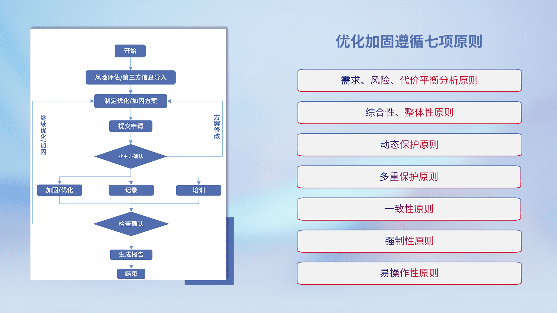 最大程度利用现有资产,,,对评估发现的问题进行封堵与整改,,,防止漏洞被利用,,,提升整体网络安全性,,为客户带来高标准的优化加固服务。。