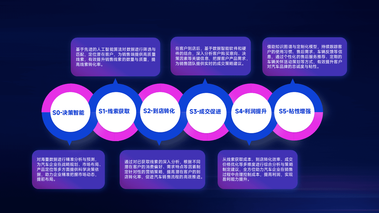 通过拓宽潜在客户来源、、、优化线索分配并提高到店转化率,,,,以增强销售效率。。。。同时,,利用线索数据不断优化分析模型,,,,有效提升转化率,,,扩大营销影响力。。。